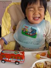 2歳4ヶ月のまる『うんち~』 とお尻をおさえるのでうんちでたんだなぁと思ったら。まるが私の手を引いてトイレに連れ行く。 オムツを脱いで、よいしょ!!おぉ~うんちしてない!!!トイレでうんちは何度かしてたけど、自分でうんちに行ったのは初めて(*^^)v ↑この子がまるだよ↑ ここからが可笑しいんだけどッ!!うんちに緑の異物が混ざっていて、まるに 『何食べたの~?』と聞いたら 『バッタ~』 と言った!!(゚ロ゚屮)屮 ママは一生懸命考えたよ。バッタはこの時期きいるはずないし、緑はほうれん草?消化しないわけないし・・・ あ~思い出した!!ガム!!! 昨日ばぁばにもらって緑のからいガム食べてた!! 飲んじゃったのね。ガムとかあめとかはあげないようにしてたけどもらうとどうしても味覚えちゃって欲しがるんだよね。気をつけないと(>_<) トイレトレーニング。姉のぴょんは必死でしたけど、真ん中のバンビは2歳過ぎたころからぴょんの真似してトイレ行ってたからすぐにオムツ卒業。 まるはいつ始めようかなと思っていたら、トイレに興味をもったしそろそろ本格的にトレーニングしようかなぁ。 *:..。o○☆゚・:,。*:..。o○☆ *:..。o○☆゚・:,。*:..。o○☆*:..。o○☆゚・:,。* そんなまるくん今日は・・・ 大好きな車の運転に夢中 知り合いの家に遊びに行ってあまりにも車が好きだからと使わなくなったおもちゃをもらったもの(*^_^*) 他にも色んなところから多々あります。。。 でもこういうもらい物なら嬉しいね♪