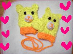☆もうすぐクリスマス☆子供達のクリスマスプレゼントを買いに行ってきましたo(^-^)o色々、悩んでおもちゃがいいとのことでぴょんとバンビはおもちゃになりました。 まるのプレゼントは初の手作りプレゼントにしました。そして初めてッのかぎ編みで作った手袋。 クマさん左右形が違いますが・・・。そして近くで見ると指がでそうなほど目が粗いけど、なんとか形になりました! 初めてにしてはいいんじゃないんでしょうか(*^^)v!?後は絵本を添えてプレゼントの準備はOK! クリスマスッ☆早くこないかなッ♪