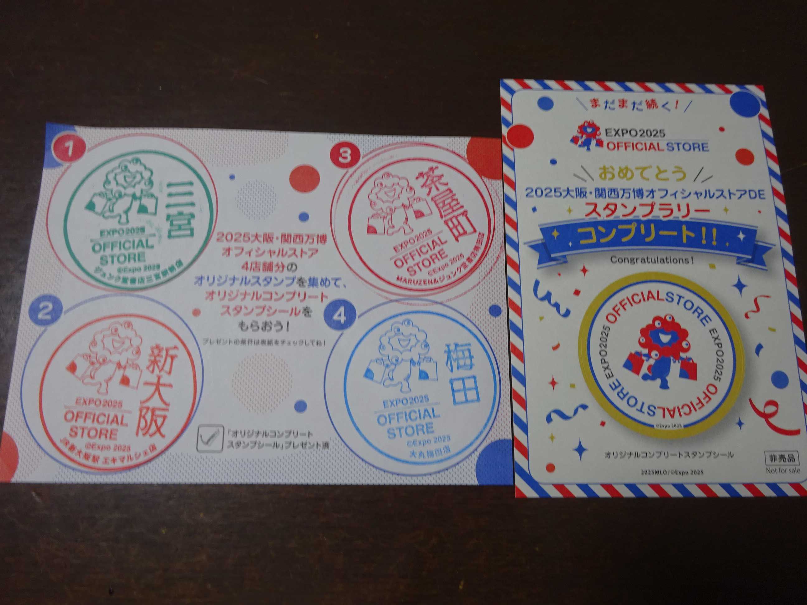 2025大阪・関西万博オフィシャルストアDEスタンプラリー4店回ってスタンプを押し、コンプリートスタンプシールをいただきました。万博内のショップは混んでいてなかなか買えなかったので、アクリルスタンドなど買いました。【送料無料】大阪・関西万博 大人サイズ リバーシブルハット 387-002A EXPO 2025 大阪・関西万博 公式ライセンス ミャクミャク 帽子 キャップ ハット バケット アウトドア メンズ レディースにほんブログ村