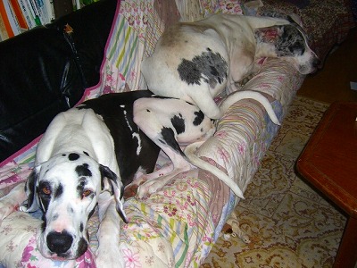 普段、よく見る光景なので、しっかりと写真を撮っています。今日のピンキー(グレートデン)リビングの端っこで寝ています。こっちはエアコン、まだつけていません。節電で夕方からつけます。次男は扇風機で過ごしていますよ。しばらくすると枕にしていた座布団から落ちて・・・またまた仰向け(へそ天)で寝ていました。のんきに昼間は寝ています~ビル(グレートデン)は、エアコンのかかった和室でずっと伸びて寝ています。夜お布団を敷くと、なぜかビルは・・・押入れに入って・・・寝たりします。クーラーがついていないとき、押入れのほうが涼しいらしく・・・ドラえもんみたい?(でかいけど)窮屈そうに。ミニーがいじめられたとき、私と娘はミニーを押入れに入れておいて、ピンキーが寝静まるのを待ったり、一時避難場所となっています。 (家の中、もうめちゃくちゃです)主人がまた出張で、朝から準備でバタバタして、更新がやっとできました。明日は、午後いっぱい中学校で、会計監査・役員会・運営委員会と続けてあり、スポーツクラブには、行けそうにありません。今日は、少し手芸を・・・麻の生地で今、ブックカバーを作りかけています。仕上がったら、アップしますね。