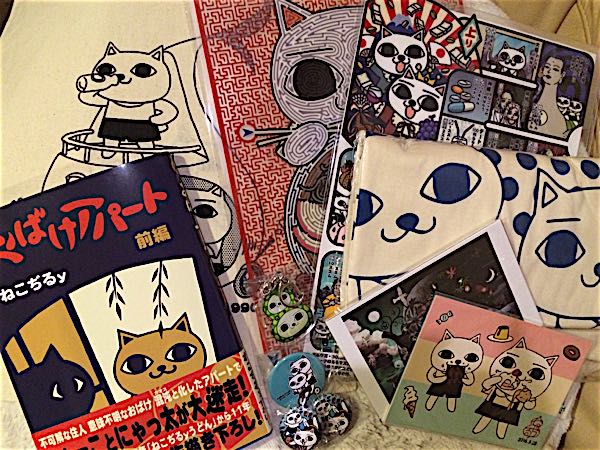 2017年1月28日「ねこぢる生誕50周年記念 ねこぢる&ねこぢるy展」へ行ってきました!大好きな漫画家の一人であるねこぢる…私が高校生の時に虜になって以来、コミックを買い漁って今でも大切に保管しています。亡くなって20年近く経とうとしていますが、決して色褪せない独特の世界観が大好きです。原画が見られるなんて初めてなので、朝からドキドキしてソワソワしながら向かったので銀座駅を出たくらいから覚えていない(笑)←うわの空スマホの地図アプリのお蔭で、無事にぎんけいさろん&ギャラリーがある三田ビルまで到着!入口にはねこぢる展の案内板があるので、到着してしまえばスムーズです。3階まで上がるとすぐにスタッフの方が!そしてドキドキ中に入るといきなり山野一先生が!!!!この日に在廊されているのは知っていましたが、こんなすぐにお目にかかれると思いませんでした!緊張してギクシャクしながら、まずはゆっくりと原画を見て回りました…先月行った山岸凉子展でも思いましたが、原画というのは本当に素晴らしいです。作者を身近に感じられて、感無量でした…途中、にゃーことにゃっ太のフィギュアもありました!これから見に行く方のために、あまり詳細は書かないでおきますが、ねこぢる&ねこぢるyファンにはたまらない空間です。ねこぢるグッズを買いました☆缶バッジにクリアファイルに絵葉書セットに…キーホルダー!それからTシャツとエコバッグです!Tシャツはサイズが豊富でしたよ!間違って160サイズを買おうとしてしまった。Mサイズにしました。いつもは保管しちゃうけど、これは着よう。大事に着よう。「サインを希望されますか?」とスタッフの方に聞かれたので「ハイ!!」と即答。おばけアパート(前編)を抱きしめながら待つ…まさか山野先生にお目にかかれるとは!と思っていた数分後にまさか山野先生とお話できる日が来るとは…と感激でした。ぢるぢる日記やぢるぢる旅行記などでお馴染みの、大好きな登場人物でもあるご本人ですもんね。そして、まさかサインと絵まで描いて頂けるとは…本当に泣きそうでした。一生忘れないと思います。家宝に致します…本当に…にゃーこ可愛いです…にゃっ太可愛いです…(T_T)エコバッグにも描いて頂けました!油性マジックであっという間に描き上げるお姿に見惚れてしまいました。私、目の前でプロの絵を見るのも初めてだったので、圧巻ですよ!本当に。2月4日まで開催されていますので、ファンの方は是非!本当に本当に素晴らしいですよ!一生の思い出と宝物ができて、私は大満足で帰宅しました。「ねこぢる生誕50周年記念 ねこぢる&ねこぢるy展」2017/1/19(木)~2/4(土)開催13:00〜19:00入場無料です!場所:東京都中央区銀座1-16-5 三田ビル3階ぎんけいさろん&ギャラリー