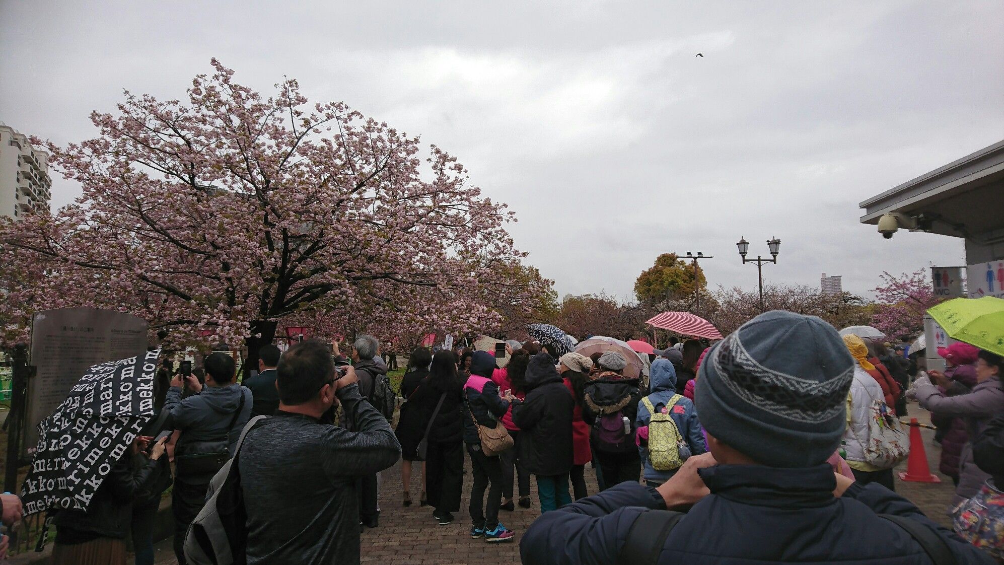 昨日は月に一度の高齢者施設訪問の日でした。 伯母と叔父は今月も元気にしていました。 帰りに姉と「造幣局の桜の通り抜け」へ。 昨日は朝から雨が降っていて、時折風も強かったのですが、昼過ぎには霧雨程度になっていて。 何とか傘を差さずに花見をすることができました(^^)v 何十年かぶりに訪れた造幣局。 悪天候とは言え、それなりに賑わっていました。 今年の花は「紅手鞠」。 残念ながら、まだほとんど咲いていませんでしたf(^^; それでも、いくつか咲いている木もあって。 建物とのコントラストも良い感じでした。 帰りに天満橋から撮った写真も綺麗で。 空が青かったら言うことは無かったんですけどねーf(^^; 贅沢を言ったらバチが当たりますね。 4回目の花見ができて、満足な一日でした♪