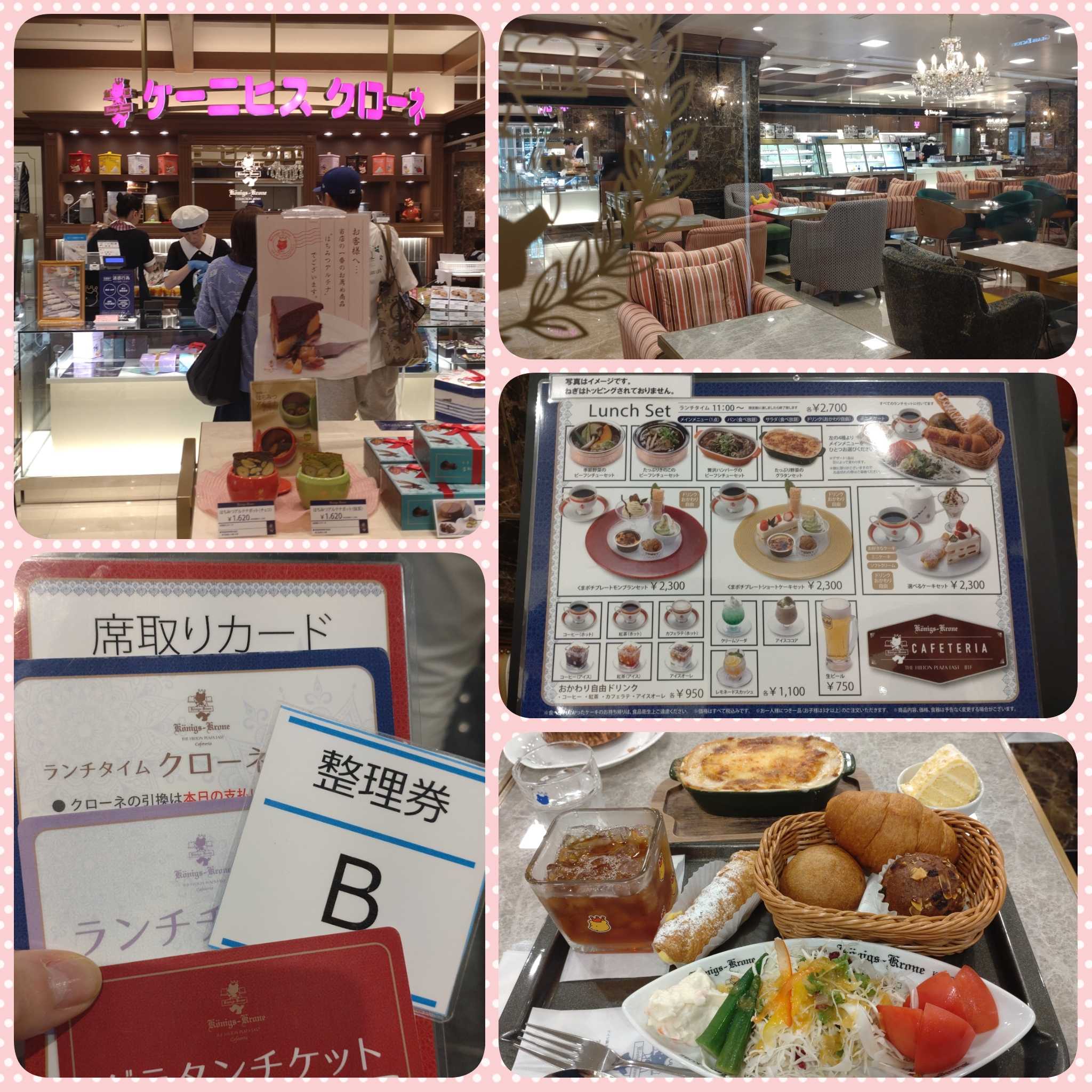 昨日、友人2人とのランチ会に出掛けて来ました。大阪駅から程近い、ヒルトンプラザイーストB1にある「ケーニヒスクローネ」さんへ。11時オープンなのですが、予約ができないお店で^^;10時頃から並び始めると良い、と言う情報をゲットし、その頃に着くようにお店に向かいました。が、既に15名ほどの方が並んでいらしてビックリ(゚∀゚)皆さん、出足が早い!3人でおしゃべりをしながら待っていると、あっという間にオープン時間に(^_-)最初のグループではありませんでしたが、2番目のグループとして入店することができました。座席は自由で(^o^;私達はお料理ブースから近い席をキープしました。オープン前に店員さんからいくつものカードが手渡されるのですが、その内の1枚−席取りカード−をテーブルに置いて、お料理コーナーへ。私達が注文したのはメインメニュー(1点)+パン(食べ放題)+サラダ(食べ放題)+飲み物(おかわり自由)+ミニデザートのランチセット。数種類用意されている中から好きなパンとサラダをトレーに乗せてお会計。そこでメインのお料理と飲み物を注文し、支払いを済ませてようやく座席へ^^;私はメインはグラタン、飲み物はアイスティーにしました。そこに数量限定ではあるのですが、コロネまでついて。ボリュームが満点過ぎるランチでした(*ノω・*)初心者にとってはなかなかややこしい仕組みで、結局、お料理にありつけたのは11時40分過ぎ(;´д`)お腹が空いていた事もあり、ほぼ完食しました(๑´ڡ`๑)かなり広く、座席数も多いのですが、ランチだけでなくケーキのセットを注文する方もいらして。最終的にはかなり席が埋まっていました。ランチの後にはグラングリーン大阪に足を伸ばして。初めての訪問で、少し探索をしただけでしたが(◠‿◕)大阪駅からすぐの所に大きな芝生の公園があってGOOD(^^)v開放的な気分になりますよね〜。飲食店なども充実しているみたいなので、またゆっくりと訪れてみたいと思いました。