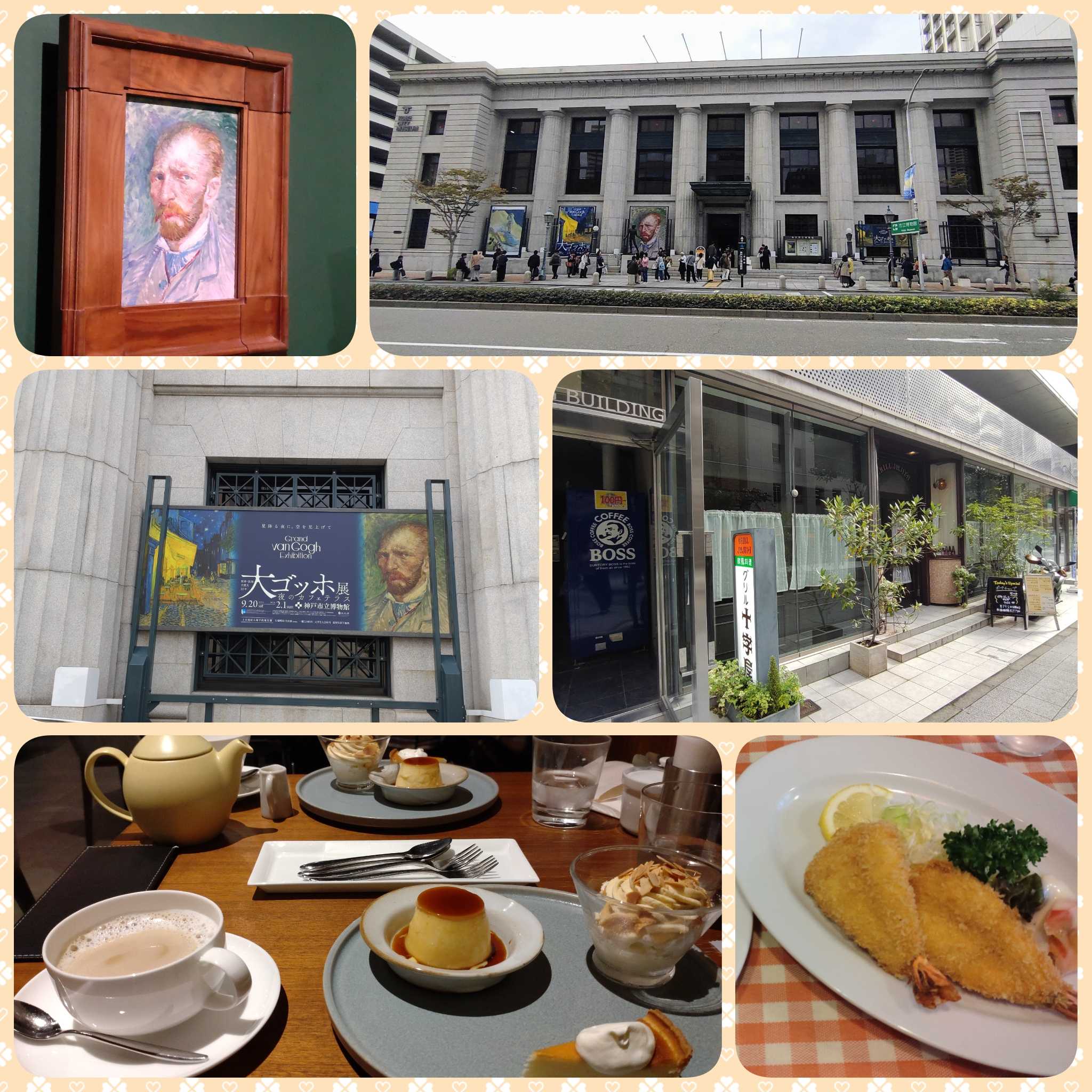 今週水曜日、久しぶりに神戸を訪れました。友人から「大ゴッホ展」に付き合って欲しいと誘われまして(^_-)まずはランチから〜(๑´ڡ`๑)洋食の「グリル十字屋」さんにお邪魔して来ました。11時30分頃にお店に到着したのですが、既に満席で(゚∀゚)でも、10分程で案内してもらうことができました。友人はハヤシライス、私はエビフライを注文。レトロな雰囲気の可愛らしい店内で美味しくいただきました。◕‿◕。そこからゴッホ展の開催されている神戸市立博物館までは歩いてすぐ。博物館は平日にも関わらず多くの人で賑わっていました。ゴッホと言えば、明るい色使いの作品が多いのかと思ったのですが、どうやらそれはパリに出てからのよう。オランダにいた頃は黒チョークを使って描くことも多かったみたいで、暗い色調のものが沢山あってビックリしました。有名な“夜のカフェテラス”は大人気で(◠‿◕)最前列で見るには行列に並ばなければならなかったのですが、私たちは後方からでもいいよね、と。でも、割と近い距離から見ることができました(^^)vゴッホ展の後は友人おすすめのベーカリー「ハウネベーヤー」さんでパンをいくつか購入してから、お茶を飲む為にセンター街の「モロゾフ本店」へ。ここでも10分程の待ち時間で済みました。プリンが乗ったデザートプレートをいただいたのですが、Goodでした(◕ᴗ◕✿)我が家からだとちょっと遠いのてすが、美味しいものもいろいろと食べられて。大満足の神戸散策でした(✿^‿^)