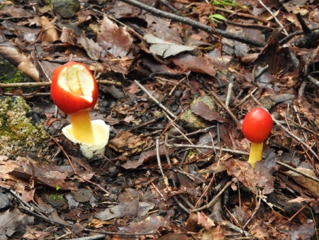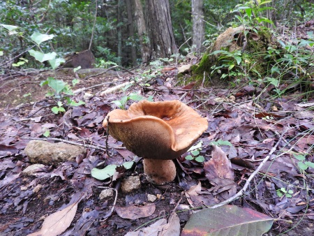 台風が過ぎ、そろそろきのこが出てる頃かなと思っていたら、夫から「ソライロタケを見つけた!」とメールがはいり、カメラとスマホをもって山へ。