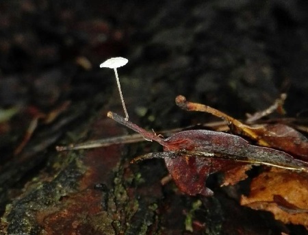 葉っぱの茎から生えた5ミリくらいの小さな小さなきのこ