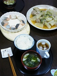 またもやお久しぶりです。日記を更新しない間にタイトルのような事が通り過ぎて行きました。(笑)前みたいに「毎日書かなきゃ!」と言うねばならないは辞めたので、出来る時に書きたい事を書こうと決めたらだいぶ楽になりました。では、感動から。もう日がだいぶたってしまいましたが、今月の21日に友達と最後の劇団新感線 IZO(森田剛主演)を見てまいりました。本当に感動しました!!15日の始めて見た時も感動しましたが、今回、以前よりだいぶ前の席で見る事が出来て、最初に見た時にわからない細かな事がいろいろ見えました。席が、通路横だった為、劇中剛が客席に向かって走りぬけて行く時、剛の匂いを感じられて嬉しかったです。初めて見た時より5日経ってたのですが、剛の声がだいぶ枯れてて、「やりきっているんだな~」と感動しました。そして、最初見た日はわからなかったけど、剛も戸田恵梨香ちゃんもこの日は本気で泣いてて、私も涙してしまいました。初日以上に嗚咽して泣いている人も多くて、それだけ人の心を揺さぶる事が出来る演技をしている剛にも感動しました。そして、次に先週の土曜日に、ランチ後、お友達のマンションに併設されているシアタールームにて、上映会をしてまいりました。私が住んでいるマンションんにはそういう素晴らしい物はないので、本当に「凄い!!」の一言でした。10人近く集まって見たのですが、その前に、手作りケーキを作って来てくれた方がいて、12月と1月の誕生日の人を一緒にお祝いをしてくれました。まさか私が入っているとは思ってなかったので、かなり驚きでしたが、私の名前も入ってて嬉しかったです。その素晴らしいケーキはこちらです!! 私は甘過ぎるのは苦手なのですが、このケーキ、ほんっっっとぉ~に美味しかったです!!ありがとうございますぅ~!!そして、ランチの時にはプレゼントも頂いちゃいました。素敵なメッセージ付きのドライフラワーです。本当に嬉しかったです。そして、上映会は見た事のない貴重な映像を存分に見せて頂き、もう本当に「萌え~」となってしまいました。やっぱりじゅんのは最高だぁ~!!素敵過ぎるぅ~!!!そうそう、今回ビックリする事がありました。上映会でたまたま隣に座ったお友達が、話の流れから同じ中学の出身だとわかり、更にはたっちゃんまでもが同じ中学卒業だとわかりかなり驚きました。こんな事ってあるんですね~。そして、興奮冷めやらぬまま、その後皆で飲みに行きました。途中、たっちゃんファンのお友達が先に帰る事になり残念でした。飲み行ってじゅんのだけの話しをしたかと思うと、実は、途中で席を交代してから、私が座っていたほうのテーブルはいつしかガンダムや、仮面ライダーの話で盛り上がってしまいました。(笑)主人とはガンダムは毎週一緒に見ていますし、映画も一緒に行きますが、お友達の結婚指輪が、ガンダム関連の物で感動しちゃいました!!いらっしゃるんですね~。そして、途中からお隣に座られた仁君ファンの方とは、仮面ライダーの話しでも盛り上がってしまいました。必ず見てたわけではないのですが、仮面ライダー響鬼の頃、ちょこちょこ見てて。また水嶋ヒロ君の仮面ライダーを途中から見てて、最初から見てなかった事を後悔しました。そして、最近最終回を迎えた、仮面ライダー電王は一回も欠かす事なく見てしまいました。先週から始まった仮面ライダーキバはまだ見始めたばかりだから続くかわからないけど、とりあえず見る予定です。と言う事で、シアターオフ会、いろんな意味で本当に楽しめました。ここで寝ればいいのに、帰ってお風呂に入ってからまた主人と日本酒で乾杯しちゃいました。へへ。 こんな楽しい事が終わり、日曜日の夕飯。主人が作ってくれた鍋がどうもあまり食べられなくてヘンだな~と思ってたら、昼間食べた唐揚げに当たったのか、その夜から苦しみ始め、翌日たまたま私は休みだったから良かったのですが、もう大変な下痢状態が続き苦しみました。「もしかしてノロ?」とか思ったけど、夕方治まって来たのと、その他は微熱しかなかったのでどうやら違ったようです。昔から油に弱くて、天ぷら、唐揚げ類は気をつけないと後で1人だけ大変な事になるとわかっているのに、食べたくなっちゃうんですよね。油が古いかどうか、私に食べさせれば一発でわかってしまうって奴です。(笑)月曜日、ウンウンうなっていた私に、「遊び過ぎかもよ?もしそうなら夜遊び禁止だな」とか言われたのですが、昼主人から電話がかかってきて「やっぱりあれは唐揚げだな」と言う事でまた遊びに行けそうです。(笑)最後に久しぶりに昨日の夕飯を載せます。昨日はシチューに、かじきの卵乗せハーブパン粉焼きでした。では、そろそろお風呂入って、夕飯の準備に入りま~す。