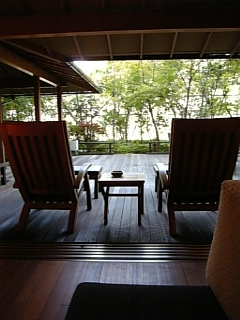 二日目の朝、旅館から慣れないPCで一度アップしましたが、写真を載せる事が出来なかったので、ここでは写真を掲載しようと思います。今、東京モーターショーが開かれてますが、伊豆に向かう途中の足柄SAにてなんと高木虎之助さんのF1カーが展示してありビックリ。それもレストランの入口に。(笑)思わず撮って来ました。予想以上に小さくてビックリ。主人と二人で「私達あの席にお尻入らないね。」って。お昼は前にお話したように、土肥温泉近くで頂きました。海が綺麗でした~。そして、今回泊まらせて頂いた嵯峨沢館 と言う旅館はある雑誌のトップを飾る旅館で、一度利用したら皆リピーターになると書いてある所に惹かれました。場所柄なのか、ここの旅館の人たちは皆素朴な感じの人ばかりで、話してて、こちらがほっこりするような方々でした。先日ロビーの写真も載せましたが、この旅館、いたる所にお花が飾ってあるのです。こんな感じです。そして、私達が泊まった【もくれん】のお部屋の入口はこんな風になってます。素敵でしょ?そういえばお部屋の写真を撮らなかったな~。そしてお夕飯は、泊まったお部屋ではなく、お食事用の個室があって、そちらで頂きました。テーブル席で、隣の声も聞こえず、担当の方だけが給仕に入って来られるだけで、本当にゆっくり出来ました。食事の準備も片付けもしなくていいって嬉しいですね。お夕飯はこちら。あんまり美味しくて、途中写真を撮らずに食べてしまった物もいくつかあります。もう食べきれないくらい出ました。 そして、朝食もこれまた食べきれないくらいでしたが、本当に美味しかった~!!!こちらです。 ほとんどの方が一泊で帰られる中、私達は連泊なので、朝ゆったりとロビーでコーヒーを頂いてから修善寺の方へ遊びに行きました。旅館の人にあらかじめ美味しいお蕎麦屋さんを紹介して頂いて行ったのが、こちらの朴念仁です。ネットで検索するだけでもすぐに出てくるほど有名なお店です。中からは、こんな素敵な風景を見ながらお蕎麦を頂きました。私は麦とろ蕎麦を頂きました。主人は玄びきそば(くろびき)を頂きました。普段私はそばつゆって飲まない人なんですが、ここで飲んだそばつゆは最高に美味しかったです!!そして近くの風景を楽しんで、ちょこっと紅葉も見てから旅館に帰りました。そう、午後13時50分に岩盤浴を予約してあったからなんです。こちらも二人だけで利用できる個室を予約しました。こちらです。窓からは、旅館前の川を眺める事が出来ます。窓側は主人が寝ていたので手前の私からは見れませんでした。ここの旅館の凄いところは、岩盤浴にも、部屋にある露天風呂にもTVとラジオが着いてる事です。なのでFMのクラシックをかけながら、のんびりと二人で岩盤浴を楽しみました。岩盤浴の後、12種類もあるお風呂からこちらの選んで昼間の誰もいないお風呂を独占です。お風呂から出た後は、デッキで川を眺めながらアイスを頂きました。その後主人は部屋でマッサージをしてもらって、私は旅館にあるマッサージチェアでゆったりしつつ母に長電話。(笑)本当にこんなにゆったりしたのは久しぶりでした。そして二日目のお夕飯はこちら。どれもこれも本当に美味しかったのですが、地元で取れた【みやじ鯛】のお刺身と【わさび】がまた美味しかったです。生わさびは帰りにわさび専門店で買って来ました。まだ頂いてないのですが、楽しみです。そして最終日、結局二日間とも、自宅にいるのと同じ5時頃起きて誰もいないお風呂を1人占め。二箇所のお風呂と渡って、最後に部屋にある露天風呂でゆったりとしました。そして部屋のデッキで日の出が出るのをゆっくり見てました。これは携帯から撮ったから限界がありますが、山から日がさして来て綺麗でした~。そして、美味しい朝食がこちら。またまた美味しかったけど、食べ切れなかったです~。このデザートも美味しかったのですが、この器が素敵でした。朝食を頂いたお部屋の小物も可愛かったです。ゆっくりと朝の準備をして、部屋で【スッキリ】の有閑倶楽部の撮影現場の様子も見てからロビーへ。清算してからロビーで最後のコーヒーを頂く事に。いゃ~平日の火曜日なのに、かなりの人がロビーにいてビックリしました。やっぱりこの旅館は凄い人気なんだわ~。今度は梅が咲く季節にでも来たいな~と主人と話してます。