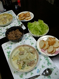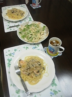 おはようございます!!先日はたくさんのコメントをありがとうございます!また、タイトルを見て、私が倒れたかと心配して下さった方、ありがとうございます。そして心配かけてごめんなさい。今日、やっと会社で彼女に会えるので、状況を聞いてみます。そうそう、今度の日曜日の『MUSIC LOVERS』が楽しみですね~。公式HPにもライブの詳細が載っているようです。ゲストは片岡鶴太郎さんと香椎由宇さん、どんなトークになるのでしょうか?香椎さんはちょっと不思議ちゃんだから面白いかも?さて、昨日はHEY×3 SP でしたが、もの凄いジャニーズ出演率ですね。シングルチャート100にこれだけ入るとは、やっぱり人気って大事ですね。印象としては、なんだか嵐がいっぱい入ってたようなイメージでした。KAT-TUNの新曲、『Keep the faith』は5位!!嬉しい~。4位は嵐の『Love so Sweet』!嵐も宇多田ヒカルも、花男の効果が大きかったのではないでしょうか?それにしても2時間を見たいところだけ編集したら、10分ちょっと、短いな~。皆一度は見た事ある内容ですが、またこうして見ると面白いですね。V6のいのっちと岡田がジャニーズの中で孤立しているとか言って、いのっちが何とかの会に呼ばれた事がないって言ってましたが、きっとV6は誰一人呼ばれてないと思うんですよね。(笑)あっ、リーダーの昌行だけはあるかな?それにしても太一~、なぜいのっちに「いのっちは来れると思ったににな~、もう20人も電話してダメなんだよ~」って言うかな?自分ば21人目に電話されたって事実は悲しいよね。岡田君はなぜジャニーズメンバー見ると隠れるんだろう?話すのが面倒なのかしら?電話やメールが来てもなかなか返事をしない人だからそうなのかも?彼女になる人は相当寛大な人じゃないとダメかも?タキツバの回で、翼の異常なくらいキチっとしてて、ビックリ。これはかなりに神経質なタイプなのね?翼も彼女、奥さんになる人大変かも?ってちょっと思ってしまいました。倖田 來未 テゴりんに肌が綺麗なのはどんな事しているのか聞いてましたが、NEWSって全員ツルツルじゃない?あ~このまま皆ムサクならずに綺麗なままでいてほしいな~。嵐 大野君。26歳になるまでお母さんに洋服、靴を買ってもらってたって、これも驚きでしたね~。で、やっと卒業したと思ったら、通販で買っているとはね。(笑)ニノの「この人は必要だけど、リーダーである必要はない」には大爆笑しちゃいました。関ジャニの横山君、本当にこの人コテコテの関西人なんやな~。まっちゃんの「オマエもう生き物として最悪やな」にも大爆笑しちゃいました。やっぱり亮君とたっちょんが人気なのね~。面白かったです。 さて、昨日のめざましで、明日発売のV6 ニューシングル 『Way of life』(SPの主題歌)のPVが流れたのですが、これ、一つのカメラで一度も止める事なく5分間ずっと撮り続けて、一発OKだったそうです!だけど、茨城の排斥場で撮影したので、移動時間が往復5時間だったと書いてあってびっくりでした。あうあう、また$誌の感想が書けない・・・。昨日のPOPEYもまだ買えてません。近くのコンビニになくて・・・。今日会社に行く前にゲットしてからまた改めて感想を書きたいと思うます。でも、優しいお友達が何人も画像を送って下さり、嬉しかった~。ひゃ~、本当にザ・モデル!って感じだわ~。楽しみです。さて、最後にお料理です。土曜はガーリックチジャットと鍋を主人が作ってくれました。 ガージックチジャットとは、にんにくの芽、ジャガイモ、鶏をジャッと炒めて、最後のとろけるチーズをとろ~りとかけた物です。もうめっちゃ美味しいですよ~。日曜日の午後、ゆっくりコーヒーを飲みました。このコーヒーを入れている所見てると幸せだな~って思ってしまいます。日曜日も主人が作ってくれました。こちらです。そして、昨日は私が作りました。昨日は、いかのクリームチーズスパゲティとかじきのハーブパン粉焼きでした。我ながら美味しかった~。明日は主人の会社の健康診断に夫婦で行って来ます。だから今日は早めに夕飯を食べないとです。では、このへんで。