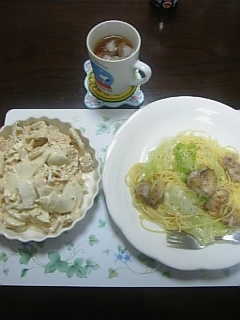 昨日は朝からかなりハイテンションになってしまいました。仕事に行かないと行けないから、リピが出来なかったけど、朝から衝撃な金髪じゅんの。最初は、「えっ?」しばらくしたら投げチュウにやられ、その後にスチール撮影のポーズと目線にもう腰砕け・・・。あうあう、こんな人目の前に見てたらどうなっちゃうのかしら?息出来ないかも?でも、次の瞬間、無意識に私の手がじゅんのの綺麗なお顔に触っていそう。その後も勝手な妄想で1人ニヤケております。あ~何度見ても飽きない。通勤の時も携帯からいろんなお友達のブログを覗いて、もう読んでて顔がニヤケて大変でした。勤務先の駅に到着して、コンビニに飛び込み、スポーツ報知を探すけど、どれかわからない。もう焦ってお店の人に探してもらったら、なんと残り3部。で、レジに並んでいると、女性が何人もスポーツ報知を買ってて、袋に入れてもらってました。私のすぐ後ろの人もそうだったな。誰のファンかしら?仁君?じゅんの?ヨコ?なんて心の中で問いかけ。会社の到着してトイレに直行してスポニチを広げて確認。またもやニヤケまくる私。しばらく眺めていたかったけど、仕事に行かないと。もう、会社にいる間中思い出してはにんまり。16時で仕事が終わりでしたが、もう16時2分にはタイムカード通してました。(笑)最近会社の帰りは、バスに乗らず、最寄駅一駅前に降りて、40分ウォーキングして帰って来ているのですが、もう一秒でも早く家に帰ってじゅんのを見たくて、どこにも寄り道する事なく、ウォーキングもしないで、バスに乗って速攻帰って来ました。まだ、DVDデッキの使い方がよくわからないので、マニュアルとにらめっこしながら、まずはその部分を何度も見ました。そして、編集してダビするまでがちと時間がかかってしまいました。同じメーカーでも、やっぱりだいぶ違う物ですね。人間本当に好きな事の為だと苦じゃないですよね~。早く本編が見たいな~。でもきっと始まる前にたくさん特集番組組んでくれそうですよね。ズームも野ブタの時、相当やってくれたから、かなり期待してます!!昨日はとうとう、イケパラ最終回でしたね~。いゃ~面白かった~。ドキドキしながら見ました。瑞希が三寮長にバレた時はもうだめかも?と思ったのに、難波先輩が男前な事を言ってくれるから、危うく惚れそうでした。(笑)あ~でもこの瑞希を呼び出した時の三寮長、カッコ良かったですね~。クラスメイトにもバレてしまって、皆の裏切られたと思う気持ちもわかるけど、佐野君が理由を話した事によって、皆もう一度瑞希を受け入れてくれてなんだか嬉しくなってしまいました。関目君、ゆうじろうやねこちゃんとお話する所可愛かった~。最後に泣きまくっている関目君も可愛かったな~。最後の女装して皆が出てくるところで、まさかの城田優君まで女装で出てくるとは思わなかったです。でも綺麗だった~。ヒロ君もかなり綺麗でしたね~!!最後、瑞希がこっそり出て行こうとする時、皆が一言づつ瑞希にメッセージを言って行くところは泣けました。原 秋葉と校長が姉妹とはかなりびっくり!!ここ、いろんな所で皆繋がっていたのね。保健の梅田さん、最後気を利かせてくれて良かった~。どうして最初の頃から瑞希の力になろうって思ったのかしら?女性苦手なのに。でもお陰で女性嫌いが治ったなら良かったか?最後、佐野君と瑞希の空港のシーンは良かったな~。前日のファースト・キスとちょいかぶるけど。これ、本当に続きがありそうですね。SPかな?*******さて、最後に昨日はこちらを作りました。たらとアスパラのクリームソース、さつまいものヨーグルトサラダです。