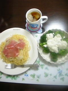 "Keep the faith(初回限定盤)(DVD付)と、"TOUR 2007 CARTOON KAT-TUN 2 YOU"が明日発売です!!早い方は今日フラゲしてくると思いますが、ネットで注文しているので、また遅れるんだろうな~。せめて明日届いてほしけど、またお知らせメールが来ません。そして一括配送だったので、Hey!Say!JUMP!の"Ultra Music Power(初回限定盤)(DVD付)"も一緒に届く予定です。お友達の中には今日有休とって、じっくり見ると言ってる方もいて、ちょっと羨ましいな~と思いつつ私は仕事に行ってまいります。昨日の男子バレー勝ちましたね~。女性みたいにラリーがないけど、バシっと決まると気持ちいい~。今の会社に宇佐美選手にそっくりな人がいるんです。今度会社で会ったら言ってみようかしら?どんな反応するかな?そしてガリレオ、また面白かったですね~。昨日のゲストは堀北真希ちゃんでした。でもほとんど台詞がなかったですね。いつも思うけど、あの突然閃いて計算して本当に結論出ているのかしら?昨日のなんてとくに、計算して出る結論かな?って思ってしまいました。まぁでもこれは面白いからまた見ると思います。今朝、12/12発売のV6の新曲「way of life(初回限定盤A)(DVD付)」「way of life(初回限定盤B) 」を予約しました。 これ、お店によってこんなに値段が違うって不思議ですね~。もうこんな時間。朝食作らないと!!このへんで昨日の夕飯を載せて終わります。今日はお楽しみの有閑倶楽部の日だしね。漫画本は全部読んでいるはずだけど、もうほとんど忘れているので、素直に初めて見る感覚で楽しんでます。それと今日は嬉しいお給料日でぇ~す!!いぇ~い!!では、昨日はこちらを作りました。生ハムとバジリコパスタ、ブロッコリーのヨーグルトサラダでは、今日も一日頑張りましょう!!