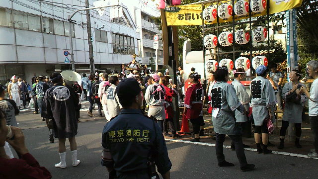 先日の日曜日に、家内の実家近くでお祭りがあり、神輿がでるので行ってきました。実家から神社まで歩いていく途中で神輿に会うかと思っていたのですが残念、 出会えませんでした。神社で、ゆんちゃんは早速「フラッペ」を買ってとせがんでました(^^;イチゴとかメロン味にするかと思いきや、「コーラ味」の一本攻めでした本人は炭酸飲料のイメージだったのでしょうが、フラッペですからねぇ・・・一口食べさせてもらいましたが、「・・・コーラアップ(・・?」という感じでした。神社を後にして、今度は神輿の来るルートを逆に歩いていき、やっと見つけました丁度休憩所の近くででもあったので、暫く見ていました。義父は祭りの役員の人たち(親戚)と話をしていましたが、「次の休憩所は幼稚園なのでお菓子いっぱいもらえるよ」と、ゆんちゃんと甥っ子に言ったので俄然元気になったゆんちゃん。 次の休憩所までは結構距離があったのですが「お菓子、お菓子。。。」と自分に言い聞かせて頑張って大太鼓を牽いたそうですここでゆんちゃん達は義父に任せて僕と家内とちーちゃんは、西荻にあるメロンパン屋を探しに駅前をぶらぶらしていました。結局、休みだったみたいで諦めて帰ってきたのですが、途中、美味しいかき氷屋を通ったら店の外まで並んでました(^^; 確かに美味しいけど・・・そのまま帰るのも悔しかったので「おもちや」さんでポテト大福やキビ大福などをかって帰りました。大体2時間半位歩きっぱなし・・・ いい有酸素運動になりました。ちーちゃんにもいい刺激になったかもね(^^)
