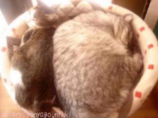 こんにちは。ぴよ母Akiですすっかり猫専用台になってしまった、我が家のチェスト。ふと見ると我が家の王様・みいこが・・・くるまっています。正面から見ると、こんな感じ。よく見えないので、フラッシュ撮影でもう一度♪カーテンと窓ガラスの間に入って、カーテンをチェスト上に持ってきて、自らがすっぽりとくるまることの出来る 『巣穴』 を作ったようです。王様、巣穴の中で、今にも寝てしまいそう王様ね、最近ごきげんななめなんですよ。どうやら、「ぴよばっかり、おいしいごはんをもらっている」と思っているようなのです・・・ぴよたんは、ドライフードは食べないほうがいいと病院で言われているので、朝も夜も、缶詰やレトルトに、やわらかくしたドライフードを入れて食べています。猫缶大好きな王様も、ぴよと同じものが食べたい!!!でもみいこは、話せばわかってくれる、おりこうにゃんこぴよの具合いのことを説明して、納得してもらっていたのです。ところが、やっぱり気持ちがおさまらないのか・・・最近、こうしないと食べてくれないの。ぴよ母の手に乗せてあげないと、食べない・・・手に乗せてあげると、ちゃあんと食べるんですよ♪そして、満足すると、ものすごいダッシュで走り去っていきます(これを、「満足走り」 と呼んでいます。 欽ちゃん走りみたいな感じ?)急いでいる朝にこれを要求されるとツライのですが・・・ぴよが来るまでは、私のことを独り占めしていたみいこ。たまには、甘えさせてあげないとね「うわさされてるような・・・???」その頃ぴよたんは・・・あるものを製作中のぴよ母の足の間で、熟睡中でした 【予約】 マンハッタナーズカレンダー1↑ 来年もマンハッタナーズにしようかな♪ 猫ブログランキング、いつも応援ありがとう(38位です♪)のサブカテゴリーにも登録しました♪(クリックは、↑のバナーでも、下のバナーでも、どちらか1つで大丈夫です♪)しばらく巣穴に入ったままだった 王様みいこ に今日も応援の ニャゴニャゴくりっく よろしくお願いします