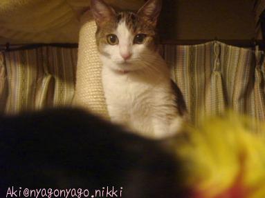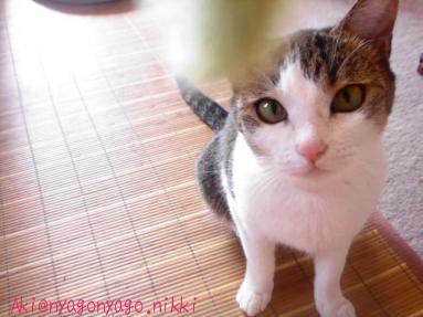 こんにちは。ぴよ母Akiです突然ですが、ブログタイトルを、『あかがお猫・ぴよたんのニャゴニャゴ日記』に、変更しました♪「ぴよたん」 という呼び方のほうが定着しているし・・・「あかがお」 に変えたいなぁって、ちょっと前から思っていたのです。これからも、『あかがお・ぴよたん』 に、会いに来てくださいね昨日の夜のぴよたん空中部屋の上に座っているところに・・・「それは にゃんですにゃ?」「ぼうつきねずみさん ですにゃ」「さっそく ちょいちょい しますにゃ!」「たのしく ちょいちょい しますにゃ~!!」「ねころんで ちょいちょい しますにゃ~~!!!」「さいじょうだんでも ちょいちょい しますにゃ~~~!!!!」大盛り上がりですぴよたん、棒付きねずみさんは、楽しいね~~~「ぼうつきねずみさんが すきですにゃ~」・・・と、その時!!のす太が立ち上がり、ぴよに 『あること』 を言いました。楽しく遊んでいたのに、固まるぴよたん。「にゃ・・・」ぴよたん、ピーンチ「いやですにゃ~・・・」後ろ向いても、無駄だと思うけど・・・? タマの水 【肌用水】↑ こういうのって、どうなんだろう・・ 2007年版の、365カレンダーオールキャットPart2 に、ぴよたんを登録しました見てね! ロールケーキぴよたん♪ → 11月7日やったぁ♪ 目標達成しました~~~ 猫ブログランキング、いつも応援ありがとうのサブカテゴリーにも登録しました♪これから恐怖の○○○な ぴよたん に今日も応援の ニャゴニャゴくりっく よろしくお願いします