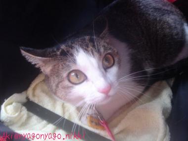 こんにちは。ぴよ母Akiです昨日からの、つづきですよ病院が終わって帰れると思ったのに・・・なぜかお洋服を着せられてしまったぴよたん。「つかれましたにゃ」待合室のベンチの上で、少々お疲れの様子です。めずらしく、キレイに写真が撮れたよそもそも、歯茎の腫れが気になって病院に行っているのですが、もう1ヶ月以上、消炎剤を飲んでいるのに、全然変わらないのです。そこで今回、先生と相談した結果、弱いステロイドの薬を一週間だけ飲んでみることになりました。ぴよ母、ステロイドは飲ませたくなかったのですが・・・絶対に体に負担がかからない量を飲ませて、何か異変があればすぐに中止する、ということで、しぶしぶ納得。また一週間後に、診てもらいに行かなきゃさて、お洋服を着せられて、車に乗ったぴよたん。「どこ行くにゃ?」前々回の病院の帰りの時も行ったでしょ?そうです、ホームセンターでぇす今日は大変だったから、普段買わないような、高いごはんにしようね♪「どれがいいかにゃ~♪」ぴよたん、これはどう?「くんくんくん・・・」 「いいですにゃ」スリスリ フードを選んでうろうろしていると、キャットタワーコーナーに来ました。ぴよたんのタワーも、ここで買ったんだよ!!「たわー ですにゃ!」 「どれどれ?」 ぴ、ぴよたん、入っちゃだめ~~~お買い物が終わり、車に乗ったぴよたん。「もう おうちに かえるにゃ?」実は・・・ まだこれから、行くところがあるのですよぉ~のす太の会社のお客様の(猫好き)、お勤め先へ~~~お客様は、ニャゴニャゴ日記を見てくれているかたなのです♪そして、さらに・・・ごた~~いめ~~~~~んこちらの事務所にゃんこの、ハナちゃんです初めは、ケージに入っていない状態でご対面したのですが、ハナちゃんがすごく怖がってしまったのです。実はハナちゃん、人間以外のイキモノを見るのは、これが始めて!!みいこをお風呂に入れた時のような声で鳴いていました。ぴよは、始めは低い姿勢で様子を伺っていたのですが・・・ハナちゃん 「んなお~~~~~~~! んなお~~~~~~~~~!!」「う~~~~~~~~~~~~~~」う~~~ だけじゃなく、2回くらい 「しゃ!」 も言ってましたよこちらが、ハナちゃん♪ノルウェージャンフォレストキャット(名前合ってる?)みたいな感じです。毛が長くてやわらかくて、つやつや~~まだ1歳半くらいの女の子なのに、とっても大きいの!!6キロくらいありそう・・!!ものすごく美形にゃんこちゃんなのに、うまく写真が撮れなかった・・・ごめんにゃさいぴよたん、今度こそ、おうちに帰ろうね♪「くるまにも にゃれて きましたにゃ♪」あれ??? そう言えば、ぴよたん・・・あんなに苦手で固まっちゃうお洋服なのに、平気みたい・・・??? 猫ブログランキング、いつも応援ありがとう(36位です♪)のサブカテゴリーにも登録しました♪(クリックは、↑のバナーでも、下のバナーでも、どちらか1つで大丈夫です♪)家に着いたらお洋服で普通に歩いていた ぴよたん に今日も応援の ニャゴニャゴくりっく よろしくお願いします