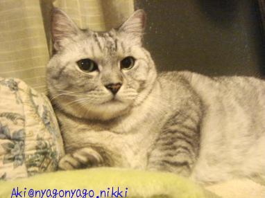 こんにちは。ぴよ母Akiです昨日は、9歳になったナナコに、たくさんの 『おめでとう』 をありがとうございましたお誕生日のナナちゃんは、昨日グリニーズデビューをしましたよ♪みいこにもあげたのですが、もう2にゃんとも大喜びそんなにおいしくて歯にもいいなら継続してあげたいところなのですが・・・病院で、「ドライフードは食べないほうがいいね」 と言われているぴよたんが、すっごくグリニーズを欲しがるんですよあほなぴよ母が、『サーモン味』 のグリニーズを買ってしまったばっかりに、ぴよの大好きなにおいがしたのでしょう・・・グリニーズって、噛むことによって歯磨き効果があるんですよね(え? 違う?)硬いものはぴよにあげられないし、でも欲しがるし・・・なのでぴよには 『またたびジャーキー』 を小さく刻んであげたのですが、グリニーズのおいしいにおいには勝らなかったようですぴよがとっても悲しい顔をしていたので、今あるグリニーズがなくなったら、もう買わないかも・・・ ぐすん。今朝は、窓を開けると心地よい風が入ってきました最近また、チェスト上が、猫たちの間で人気スポットになっています。9歳になったばかりのナナコさん 何かを発見!!お外を見たくてやってきた、ぴよたんです。 それを見て怒るナナコ(そして、急いでカメラの準備をする、ぴよ母)ナナコは、ぴよが近くに来るだけで気に入らないんです・・・「来ないでよっ!! シャーーーーーーーーー」9歳のシャー、かなりの貫禄ですぴよたんも、たじたじ・・・ でも、やっぱり外が見たい様子。そろりそろりと、チェストにあがっていきます。「やっぱり おそとがみたいにゃ・・・」「う゛~~~~~~~~~~~~~~~~~~~~~~~~~」「ここまでくれば にゃんとか みえるかにゃ?」「う゛~~~~~~~~~~~~~~~~~~~~~~~~~」(ぴよ、ものすごく腰が引けています)はっ ふたりの目が合いました!!「ご ごめんにゃさいですにゃ」「う゛~~~~~~~~~~~~~~~~~~~~~~~~~」(ぴよ、ますます腰が引けています・・)ぴよたん、ナナコの目の前にいるのがツラくなったのか、チェストと窓の間に避難することにしたようです。「むこうに にげるにゃ」「に゛ゃに゛ゃに゛ゃに゛ゃに゛ゃに゛ゃに゛ゃに゛ゃに゛ゃに゛ゃに゛ゃ」・・・ぴよたん! 危ないッ!!!ナナコの 「に゛ゃに゛ゃに゛ゃ」 だよ・・・!!!や、やっぱり・・・横顔ですが、ナナコがシャーしているのが見えますか?9歳のナナコ、さっそくのダブル・シャーですナナコさん、そろそろ、ぴよたんとも仲良くしてもらえないでしょうか・・・ ※通常価格の20%OFF!【33%増量中!】【正規品】グリニーズキャット 2007年版の、365カレンダーオールキャットPart2 に、ぴよたんを登録しました見てね! ロールケーキぴよたん♪ → 11月7日あと21にゃんの登録がないと、カレンダーが作られないのですぅ。あと一週間だよ~~~~~同じカレンダーに登録しているお友達♪みー。さんちの ノビたん&スネぴょん幸せコイコイさんちの イヴくんbabycat98さんちの ビビパパCREA姫さんちの やまたんかんちゃん!!さんちの ニコさまたまかママンさんちの たまかちゃん猫乃宮さんちの みーすけくんangelxkissさんちの プリンちゃん眠る猫さんちの 春ちゃんチャンCandy-catさんちの にゃー子ちゃん 猫ブログランキング、いつも応援ありがとう(42位です♪)9歳のダブル・シャーにビビリまくりの ぴよたん に今日も応援の ニャゴニャゴくりっく よろしくお願いします