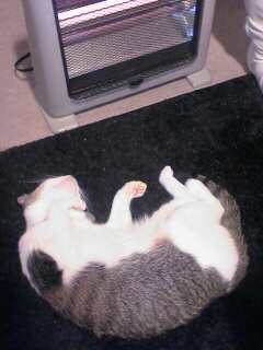 今日の写真は、ストーブの前でひっくり返って眠るぴよたん♪
