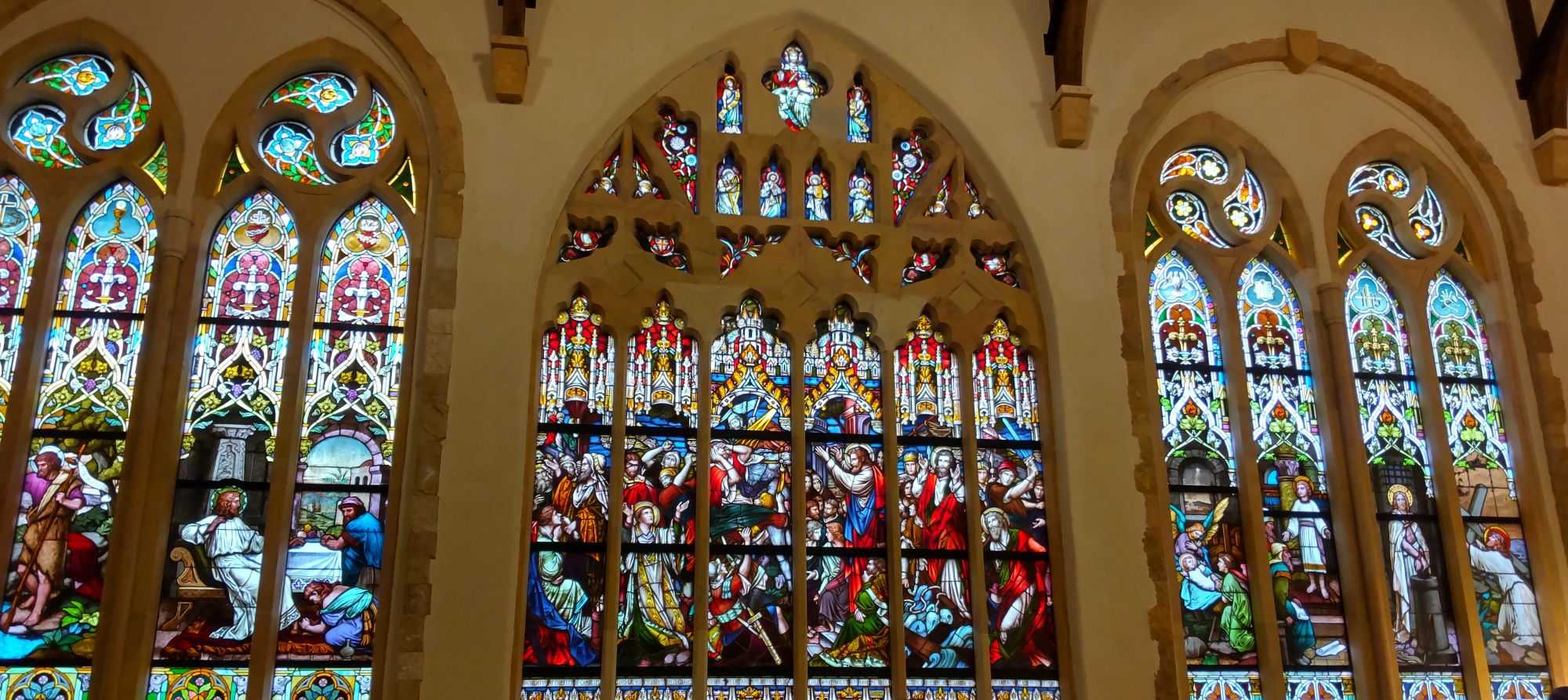 ステンドグラスやガラスのランプ、パイプオルガン演奏、オルゴール演奏を楽しめます。
