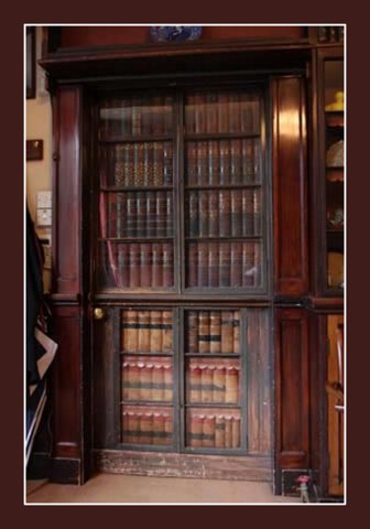 私の仕事場は、『SF插絵画家の時代』で大橋博之氏が書いているように、誰にも足を踏み入れさせたことがない。家族にさへもだ。鍵は掛けたことがないし、半ば開きっ放しのこともしょっちゅうだが、自由に出入りするのは五匹の猫たちだけ。大橋博之氏が唯一のアトリエ訪問者となった。 家族が足を踏み入れないのは、仕事場だから遠慮しているのではあるが、長年にわたって私が出入りを禁じ、それが不文律になって定着した。なぜ、人の出入りを拒否するかというと、そこには創作のための「気」が溜込まれているからだ。それは、一朝一夕に溜込まれるものでもないし、場所によっては「ここではダメだ」という場所(部屋)がある。 昔、近所同士だった小説家の花輪莞爾氏が、私が現在の地に引っ越ししたときに、新しい土地が鎌倉時代には群雄割拠し古戦場も近く、また宗教的な霊地でもあったらしいため、「あなたは霊感がするどいから、亡霊に取り憑かれるのではないか」と心配してくれたものだ。いかにも花輪氏らしい想像力だが、そうならそうで私はそのような気配をあやつって制作したいのだった。 花輪氏と近所同士だった土地も、私にとっては創作の「気」の寄せてくる処だった。その地で描き、デビューし、30年間仕事をしつづけたのだから、離れるにしのびがたかったのだが、老父老母の看護には不適当だった。 あらたな仕事場に「気」をあつめるのは、そう容易なことではなかった。家族を連れて引っ越しを完了するまで、1年間ほど、私一人だけが毎日通いつめ、ドゥ・イト・マイセルフで内装工事をし、新しいアトリエで50号の作品を2点ほど制作し、私のエネルギーを徐々にアトリエに「埋め込んで」行った。 そんなわけだから、「気」を乱されるのを嫌って私の仕事場には誰も出入りを許さなかったのだ。 ところでイギリスの文豪チャールズ・ディッケンズが、子供のころからあこがれ欲していたガッズ・ヒル・プレイスの邸宅は、1780年に当時の前市長ロチェスターのために建設されたものだが、ディッケンズは父親に「一生懸命働けば、きっと住める日が来る」と言われ、まさに父親の言葉どおりに36年後にこの邸宅を入手した。ガッズ・ヒル・プレイス・ホームのおもかげは、『クリスマス・キャロル』のなかに反映されている。 この邸宅を入手してから、ディッケンズは大勢の家族のためにリビングルームなどを大改装したのだが、もっとも気をいれたのが彼の書斎だった。それはそうであったろう。しかし、私がここでディッケンズの書斎について話すのは、そこが誰も出入りを許されなかった彼ただひとりのための創作の場所だったからだ。ドアには鍵が掛けられ、召使も入れなかった。そして、そのドアは・・・ 写真があるのでご覧いただくが、まるでドアとは分からないみせかけの書棚に偽装されていた。ガラス扉の内に並んだ書物は、もちろんダミー。そのタイトルは彼のでっちあげである。いわく、『ハンサードの昼寝のための案内書』『無愛想な大法官府寝室の歴史;21巻』『猫の生態;9巻』『ソクラテスの婚姻論』『ヘンリー8世王、キリスト教徒の証拠』『我が父祖の智恵;第1巻・無知、第2巻・迷信、第3巻・停滞、第4巻・火刑、第5巻・拷問、第6巻・汚物、第7巻・病気』、そしてこれに並んでごく薄っぺらな一冊『我が父祖の徳』。 いちいちタイトルをあげたのは、ディッケンズのユーモア・・・ブラック・ユーモアあるいは皮肉が存分にうかがえるからだが、これが人を寄せ付けないための書斎のドアであることがおもしろい。 この書斎こそ、チャールズ・ディッケンズのもっとも重要な部屋だったのである。Gad's Hill Place
