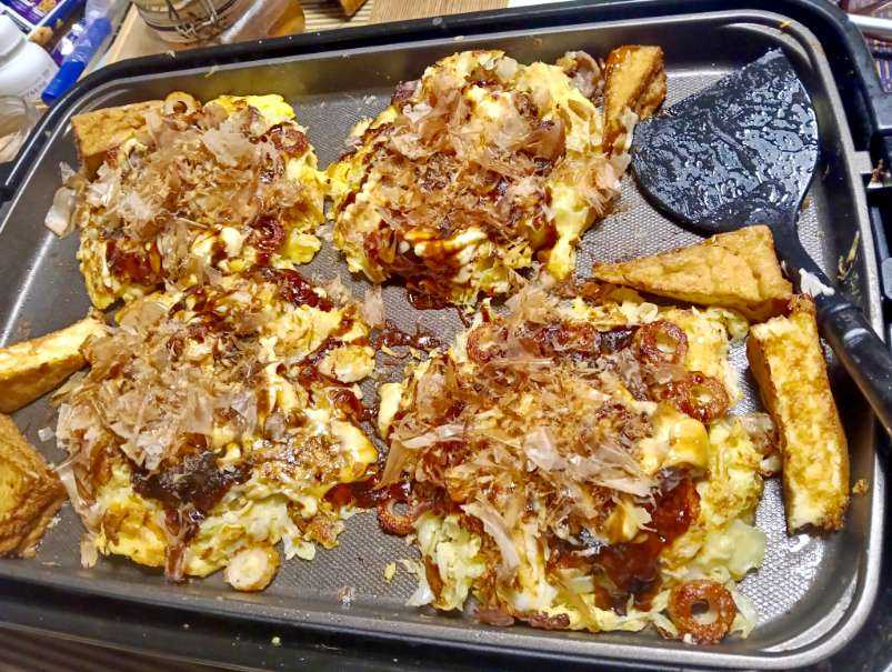 冷蔵庫の整理がてら お好み焼きと厚揚げ焼きました