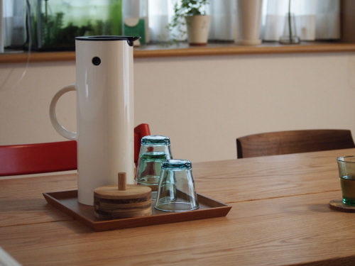 去年の夏ステルトンのジャグを購入しました。素敵ブロガーさん達が紹介されていて使い勝手も良さそうだし、お洒落だし憧れていたんですよね(^^)お買い得だったので、こちらで購入しました。一年使ってみて、買ってとても良かったです。中がガラスなので、割れないように取り扱いには少々気を使いますが、暖かい飲み物、冷たい飲み物がササッとすぐに飲めるのがうれしいです。特にこの季節は毎日、暑くて暑くて、子供達から「お茶~!お茶~!」のお茶コールがすごいんですなので、ステルトンが来た去年からお茶コーナーを作っていますが、とっても便利です。トレーに載せて、置く場所はダイニングテーブルだったり、キッチンのカウンターだったりです。トレーはコチラのチェリーを。グラスは無印の物。こちらも去年から愛用中です。グラスは私がよく割ってしまうので、お安く買えて色も綺麗なので、お気に入り割れてもまたリピしています。去年買った時はグリーン、ブルー、クリアが二個ずつあったのですが、クリアが全滅してしまったので(完全に私の不注意で(>_