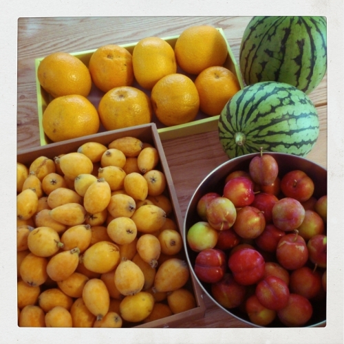 土曜は私の実家に。日曜は主人の実家に父の日のプレゼントを持って、家族で遊びに行ってきました。今年は私の父にはポロシャツ。義父には帽子を贈りました。母の日もそうでしたが、毎年喜んで貰える物をとアレコレ考えて選んでいますが、本当に悩みますね。そして、こちらは両方の実家に行った時にお土産に貰って来た果物。たまたま、両方の家から果物をたくさん貰って来たので、すごい量になりました!八朔、スイカ、びわ、プラムです。いつも、お野菜やら果物を持たせてくれるので、すごくありかたいです。さすがに家族だけでは食べきれそうにないので、ご近所さんにお裾分けに行ってきまーす