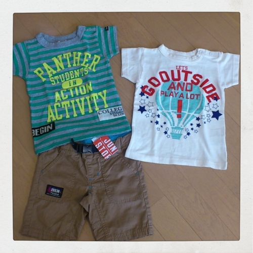 暑くなってくる前に子供達の夏服を数点買い揃えていて、それでこの夏はセールまでは買わなくても行けそうだな~。なんて思っていたのですが、当てにしていた去年の夏服が微妙にサイズアウトしている?って感じなんです。息子のは特に難しくて、去年のは90cmのが多かったので今年も着れるかなと思っていたのですが、デザインによっては妙にピチッとしているのが変で、今年は95cmをメインに買いました。トラコミュ子供のおもちゃと洋服はキリがない。↑子供服、おもちゃの情報色々。5cmってそんなに差はないと思っていたのですが、二歳児にとってはされど5cmなんですね~。息子(2歳10ヵ月)の。 95cm。娘(小2)の。 130cm。↑コチラは見たときには在庫が少なかったので、在庫なしになっていたらゴメンなさい。お姉ちゃんもまだファッションにはそれほど興味がないようで、私に選ばせてくれるのが嬉しいです。そのうち自分で選んだ服しか着てくれなくなるようになるんだろうな~と思うと少し寂しい。どちらの服も大好きなBREEZEで買いました。手頃な値段で、可愛いデザインのが買えるので、我が家の子供服の半数以上はコチラのもののような気がします。それにしても、お姉ちゃんくらいのサイズになってくると、可愛いのを探すのが難しいですね~。在庫も少なかったりで。 ギャルな感じのはよく見かけるのですが、お姉ちゃんの雰囲気とは違う気もするし・・・。どこか良いお店ないかしら・・・?最後に、後姿も。腰のところのタグ 姉・弟でちょっとだけリンクしていて可愛い↓クリックしていただけると嬉しいです。にほんブログ村