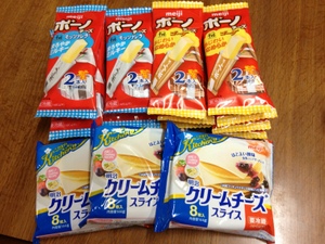 モラタメさんでタメした明治ボーノチーズ 2種23点/明治こだわりキッチン クリームチーズスライス5点 合計3種28点セットです以前は チーズやアイスは人気があって 発売時間を忘れてるとタメせない事が多かったんですけど最近は数量もたっぷりのようで 出遅れても我が家は朝のパンの時や夜のワインの時にボーノチーズはスティックタイプの個包装なので便利です