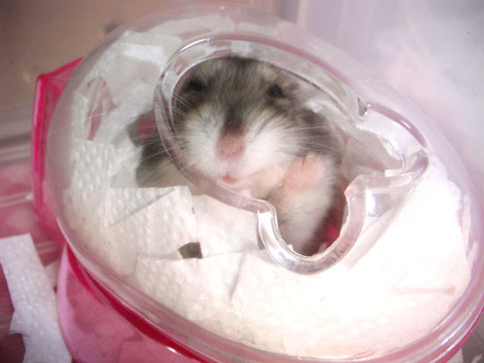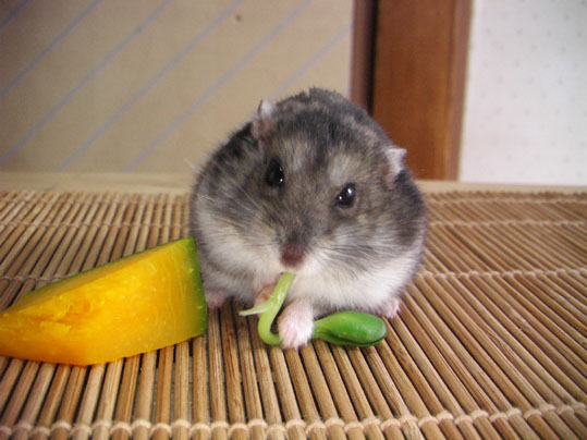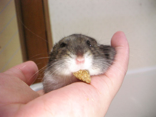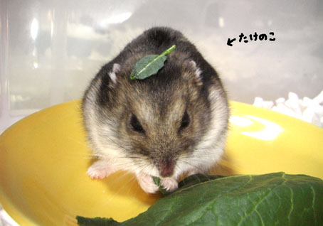みなさん、長い間遊びに行けなくて申し訳ありませんでした!訳あって、インターネットが出来ませんでした。これから順に、みなさんの可愛いハムちゃん達に会いに行かせて下さいね(^O^)/本日、こめつぶ&たけのこは、めでたく3才4カ月を迎えました![写真:こめつぶ]つぶ「みなしゃん、おひさしぶりでちゅ。」つぶ「ぼくたちきっと忘れられてたでちゅよね。ぽこのせいでちゅ~。」つぶ「ぼくが食べてるもの、気になるでちゅか?」つぶ「大豆スプラウトでちゅ。」[写真:たけのこ]のこはやっぱり毛繕いが優先のようです...。[写真:たけのこ]のこ「やっぱりお家でゆっくり食べた方がおいしいでちゅね。」のこ「これ、全部ぼくの?」[写真:こめつぶ]つぶ「今日、2本目の大豆スプラウトでちゅ♪」つぶ「毎月ぼくたちと一緒に月誕生日を迎えるお友達のバジルどん&リトルどんのママしゃん、 お祝いの言葉とってもうれしかったでちゅよ!ありがとでちゅ☆ マーチどんも今日1才のお誕生日なんでちゅね!月誕生日が一緒になるでちゅね☆」つぶ「ソイヤッ!」[写真:こめつぶ]今日もこうしてお手手の上で夢を見るつぶちゃん。毎日手の上で寝ていますよ。つぶ「ぼくたち、来月もお祝いできるでちゅよね!」