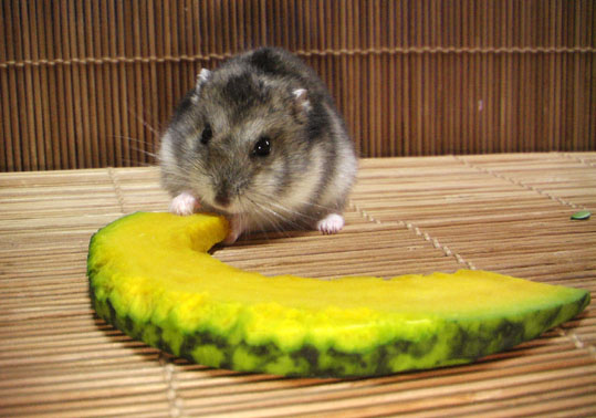 [写真:こめつぶ]つぶ「みかん♪みかん♪」つぶ「みかんって、やっぱり糸のようでちゅね。」[写真:たけのこ]みかんより毛繕いに夢中な、のこちゃん。ぽこ「みかん食べようよ♪」[写真:こめつぶ]つぶ「またうまうまもらったでちゅよ。これ、何だか分かりまちゅか?」つぶ「うまー。」つぶ「ソイヤっ。」つぶ「先っぽの部分で何食べてるか分かったでちゅよね・・モグモグ・・。」※この後、残りをお口に放り込んだつぶちゃん。ひねり部分が引っ掛ってしまいました。 ひねりの先のひらひらが、お口の横からはみ出していました(笑)[写真:たけのこ]のこ「とっても色鮮やかなかぼちゃでちゅね...うまうま...。」のこ「お味も良いでちゅよ...うまうま...今日はうまうまがよく出て来まちゅね。」[写真:こめつぶ]つぶ「ほくほくしてておいしいでちゅ。ぽこ、ありがとう...うまうま...。」つぶ「ところで..うまうま...今日は何かめでたい事でもあったでちゅか?..うまうま..。」ぽこ「つぶちゃん&のこちゃんの“3才3カ月”のお祝いだよ。おめでとうっ!☆」つぶ「え!?...もう3才3カ月になったでちゅか!」ぽこ「まだまだこれからも長生きしてねっ。来月もお祝いしようね♪」