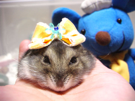 [写真:たけのこ] 店員青ねずみ「こちらの黄色いリボンなんかいかがでしょう。」 のこちゃん「ふむ。」店員青ねずみ「グリ~ンなんかもお似合いですよ。」 のこちゃん「ふむ。」店員青ねずみ「私とお揃いのブル~なんかはいかがでしょう。」 のこちゃん「ふむ。」のこちゃん「黄色に決めたでちゅ。」のこちゃん「似合いまちゅね。」のこちゃん「1才は若く見えるでちゅね。」のこちゃん「つぶどんも黄色が似合うでちゅよ。」[写真:こめつぶ] つぶちゃん「どれどれ。」つぶちゃん「ふむ。」つぶちゃん「ほぅ♪」[写真:リボン装着から数分後のたけのこ] のこちゃん「zZZ…。」(目が開いたまま)[写真:リボン装着から数分後のこめつぶ] つぶちゃん「zZZ…。」店員青ねずみ「お客さま!」