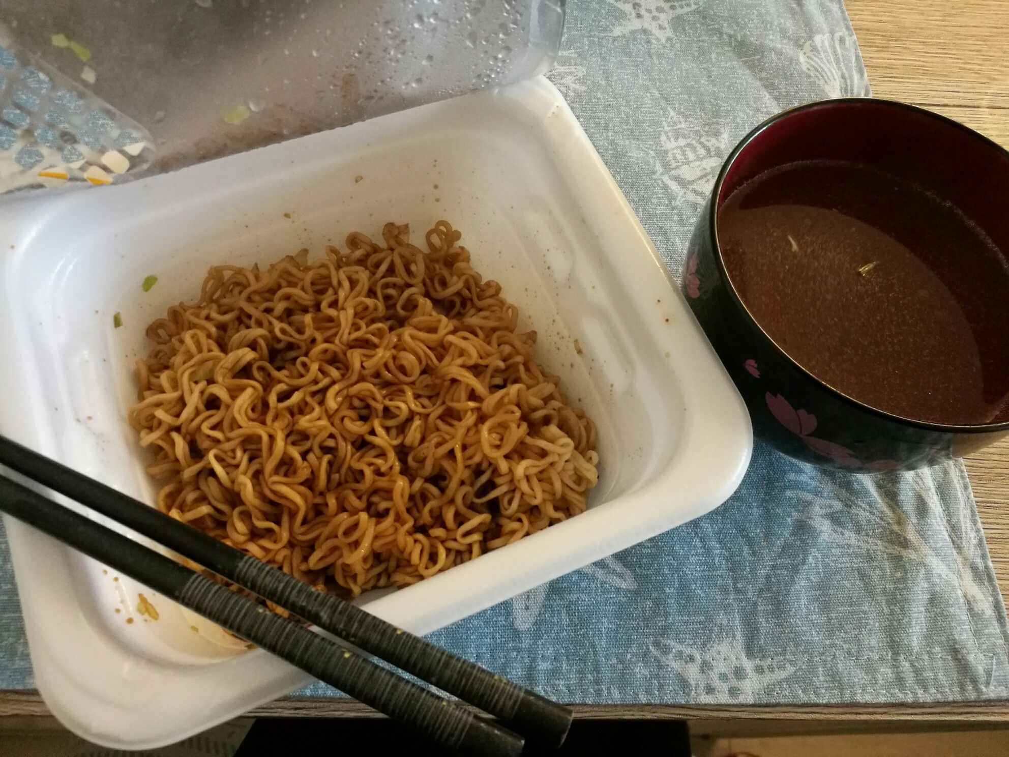 今日のお昼は料理をお休みして、カップ麺でした。 北海道民お馴染みのやきそば弁当。 私も北海道に引っ越してくるまで知らなかったんですが、北海道限定のカップやきそばのようです。 北海道民としてはソウルフードらしく、 皆「たまに食べたくなるよねー」と言っておられますが、 味は普通のカップやきそばだと思っています(笑) だが!注目すべきは横のスープ! これは僕が料理したわけではなく。 中に中華スープの元が入っていて、 カップやきそばの捨てるお湯を使って、スープを作ることができます。 インスタント食品で、まさかの二品料理が完成!!(笑) そこらへんが他にはなく、珍しいかなと思います。 東京の人はペヤング食べるんでしょー?と言われますが、そんなにペヤングばっか食べません(笑) やきそば弁当は一度は食べてほしい一品です。 【マルちゃん】[焼きそば弁当]【132g】 マルちゃん やきそば弁当 旨塩 1食 東洋水産北海道お土産 ご当地インスタントヤキソバ やき弁 ソウルフード やきそば弁当 お好みソース味 やき弁 120g (めん90g) マルちゃん 東洋水産ギフト プレゼント 北海道 お土産 ご当地 味付けいろいろあるんやな(笑)