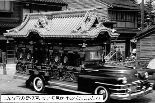 霊柩車は霊柩車で、簡素な安いものでいいよと思っても、だいたい「そちらは予約でイッパイです。こっちにしてください」と云われるし。