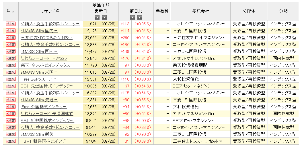 | 先進国株式 | SBI・先進国株式インデックス・ファンド |