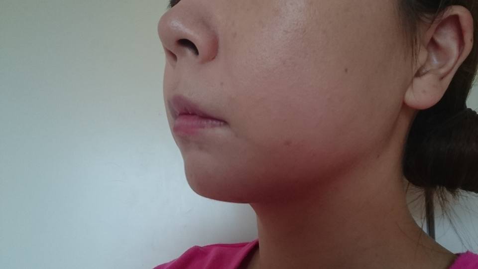 そして、化粧下地の上に1プッシュをスポンジで肌にのせたのがこちら