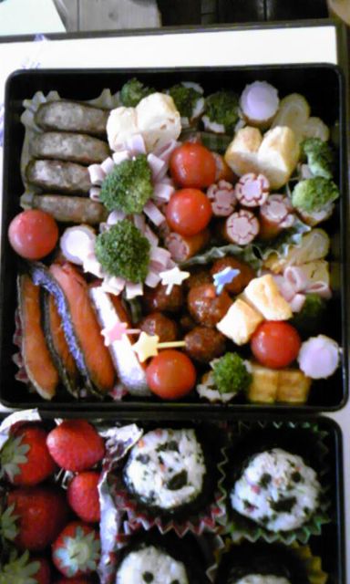 写真:今日のパパ弁 なんだか疲れてる私(*_*) 左腕が痛いというか怠いというか、今日一日中変な感じ。 特に書くことないので、このへんで。