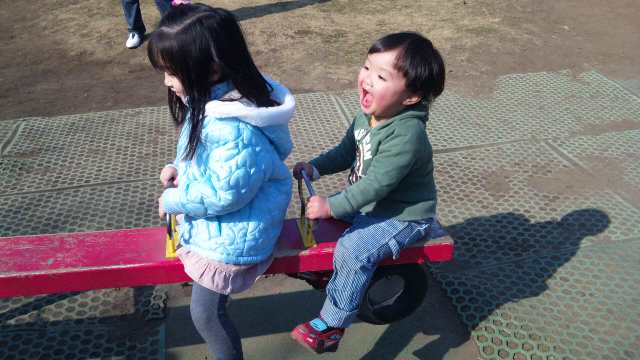 初★携帯でブログ更新。写真のアップがとても楽!知らなかった~~~!今日は公園に行ってきた!この近辺では一番大きい公園!何度か息子と行ったけど一番お気に入りの公園。バナナをヤギや羊たちに食べさせさぁ出発!シーソーに乗ってウハウハの息子。今回は滑り台にあまり?はまらずに済みました!(前回は20往復位付き合ってatlonヘトヘト)ちなみに、最近携帯を最新?型に機種変しました。歩数計が付いていて、毎日計測してますが、今日は17500歩歩いてました