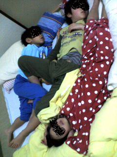 昨夜の三人の寝姿。