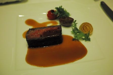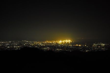 前回の食事前の夜景写真との違いは、庭園の木々のライトアップが消えてます。