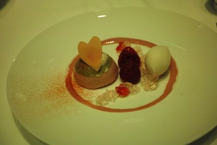 ●苺のムースとピスタチオのクレーム 桜とフロマージュブランのソルベ●