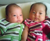 あっという間に5月でした。産まれました。3月25日 18時30分 男の子 2100g 18時31分 女の子 2150g 帝王切開でたいへんでした。やっとブログ更新するきになったのでございます・・・・。出産とはすごい体力つかいますね。 実家のパソコンでは写真のせれなくて、残念です。近いうちアップしますね。あ~~ちびが泣いている~~~。