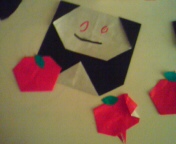 最近の姫の趣味はもっぱら折り紙!!!折るのは・・・・・・母の私なんですけど・・・ 見よう身真似して、一生懸命に折ろうとする姿勢はみられますが・・・。 「こう・・・こうするの?母さんして!・・・やってみようか」 と、一時保育いらい先生口調でございます 双子ちゃん達が寝てるときは、なるべく姫ナンバー1で接してあげないとな~~~って、 思ってます。でも夜も9時近くなると主人と私、白旗あげようか・・・ってくらい疲れ果ててます。 なので今日は肉を食べよう!!! レッツ 焼き肉 のよていでございます↓パンダとりんご