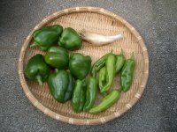 子供の頃実家で飼っていた犬はみな外犬だった。いわゆる番犬でろくに躾や手入れもせずエサに気を遣ったことなどなかった。今思うとなんとかわいそうな犬だったろう、、、そんな犬達は与えられたエサを文句も言わずに黙って食べた。だから犬はみなエサは何でも喜んで食べるものだと思っていた。 ぽんたを衝動的に購入してしまった私達にはなんの準備もありませんでした。ましてや中国。やっと飼い犬が認められたばかりの頃でフードはもちろんペットの為の商品などどこを探してもありませんでした。今のようにネットで情報を得ることもできない時代、、、。香港で買えるフードを色々与えてみましたがどれも食べてはくれません。日本から送ってもらったパピー用フードもほとんど拒否。う~ん、今思うとあの頃ぽんたは何で栄養を摂っていたのか???不思議なくらいです。市場で鶏レバーや卵を買って調理したものを混ぜてようやくほんの少しフードも一緒に口にするといった具合、、、歯並びがガタガタなのはあの頃の栄養不足のせいかもしれません。それにしても犬なのになんでこんなに食事に興味がないの??と私達は戸惑うばかり。 それでも少しは口にしてくれるフードが見つかったのでわざわざ日本から送ってもらっていました。そのドライフードに何かトッピングを乗せた食事。その後日本に来てからもしばらくは同じフードを使っていましたが、たまたま試供品でもらった物を試したらびっくりするほど良く食べてくれたので、すぐにそのフードに切り替えました(3、4歳の頃かな)。そしたらそれまでどうしても安定しなかった便が(週に1度くらいはお腹がゆるくなったりしていた)だいぶ良くなって、、、(ってことはそれまでのフードが合ってなかったってこと??、、、汗)。「成犬用」から後3年くらいしてから「高齢犬用」に変更。その頃からほとんどお腹を壊さなくなりました。 まぁ、よく食べてくれるとは言ってもドライフードだけでは絶対に食べないのですが(苦笑)、それでも過去の食事に比べたら格段に食いつきも食べ方もいいのでママ的には満足してます。 そして一昨年(だったかな?)のダイエットをきっかけに興味が薄かった食事にも(数時間は平気で放置されていた)多少執着が生まれ、今はフードを残すこともほとんどなくなりました。それでも「ごはん出来たよ~食べて~」って毎食5回くらいは声かけますけど(爆)。 あちこちのラサ飼いの皆さんも犬の食事で困った経験があるご様子、、、「犬用フードに見向きもしないラサ専用エサ(栄養バランスばっちり)」とかあったらいいのにな~(笑)。画像は今朝の収穫(ピーマン、ししとう、みょうが)とハバネロの鉢。