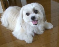 今日はすっきりとしたよか天気の東京です。ぽんたはやっと今、朝ご飯を食べました(もうすぐ昼の1時だぞっ!)今朝はダライさんに頂いたレバーのおやつとジャーキーをトッピングしたのですがちょっと見ただけで食べる気ゼロ。そのまま放置しておりました、、、。仕方なくさっき豚バラ肉を炒めて鰹節とご飯を混ぜたトッピングを追加。それでも匂いを嗅いだだけで立ち去る極悪犬(怒)。しかしこれを放置したらすぐに腐ってしまいます、、、またしても寝そべっているぽんたの鼻先へご飯を持っていって豚肉を口に入れるまで粘ること5分。1口食べれば「何これ?おいしいじゃん?!」って食べるんだから食わず嫌いはやめてくれ~!! 先日のオフ会でも「ぽんたは全然ご飯に興味がなくて、、、」って話をしたら、実物のぽんたを目の前にした皆さんは「なのにそんなに大きく育ったの??」とちょいと疑いの眼差し(爆)。 ほんとですってば~!(苦笑)オフ会の前2日間も1日1食しか食べてなかったんですよ。ちなみに1食がどのくらいかさっき計ってみましたが、ドライフードにジャーキーのトッピングを乗せて40g弱。これをきちんと2回食べればほぼメーカーが1日の給与量として記載している量になりますが(ちょっと少なめだけど)ここのところ週に何日かは1食しか食べてません。なのになぜ、、、、デブ犬?(汗) やっぱりおやつのジャーキーと牛乳が効いてるのかしらね~?(甘甘なママのせい?)今日は予定外のトッピングを追加したから夕飯は極少にしなくては!(ってか食べない可能性大だけど。笑)写真はオフ会の後半、他のラサちゃんがみんな床に降りたので油断してテーブルで眠り掛けのぽんた。右手はテーブルの上・・・ごめんなさいね