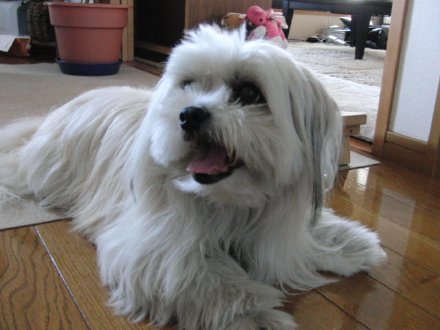 あぢ~~~~~ぃ。皆さんどぅも~~~~~バテバテなぽんたですぅ。 ママ、この暑さなんとかならないのかしら~?・・・・そうですねぇ、濡れタオルなんていかがでしょう? う~ん♪これはなかなかいい感じかも~~ でも私もっと涼しくなりたい☆・・・・それじゃ、奥の手をお出しします!(にやっ) ただいま~ってか、こういうことかよっ?!・・・・ってか、誰ですか?あなた(笑)今朝とは別犬なんですけど 見事に散切りカット(涙)。毛玉はほぐさずに切り落としてもらうようにお願いしたので(時間短縮の為)顏、手足、胸までガタガタですよ。こんなにひどいのも初めてかも~。 早くラサアプソに見えるようになりますように☆(あ、もともと微妙なんだった。笑)追伸:またしても腕の調子が悪くなってしまったので日記の更新は少しお休みます
