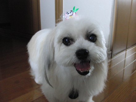 今日も風がさわやかな東京です。もう秋かしら?? 昨日のぽんたの美容院はシャンプーだけだったこともあり、あっという間に戻ってきました。送迎車から降りてきたぽんたを見て爆笑ヽ(*'0'*)ツ!!!! いや~、確かに朝「今日はリボンつけてください。できれば一つ結びでお願いします」ってリクエストしましたよ。前髪は結べるほどの長さはないので後頭部の毛を結んでくれるって受けてくださった・・・うん。その通りに結んであるよ、でも、そのリボンは変だべ~~~~!!!Σヾ(≧□≦*)ノ ぽんたは中国生まれだけど(そんなこと美容院は知らないさ~)「パンダ」のボタン付きリボンって?!しかもこのパンダの表情、ものすごくジャンクなニオイがするじゃない?!メイドインチャイナか~?! 今回リボンをお願いしたのはリボンの替えが欲しかったから。後頭部の毛が長いので顏を下げると目の前に覆いかぶさって邪魔なんです。それで最近は簡単に括ってるのですが昔もらったリボン1つしかないので新しいのがあるといいな~って思って(2つはいらないので1つ結びでお願いした)。・・・でも・・・このパンダでは・・・ダメだ~~。 あ~笑わせてもらった。来月も懲りずにリボンを頼んでみようか(笑)。ちなみに、パパの帰宅を待って笑いを共有してからリボンは取りました。こんなのつけてたらご近所の笑われ犬になっちゃうもんね(〃▽〃)