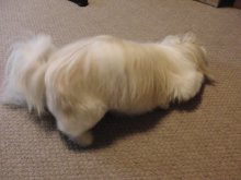 昨日のワクチンのせいか今日のぽんたは全く元気なし、食欲なし。フードを食べる気配がないので手作りおじやを作ったけれど結局何も食べませんでした。今週は足の調子もずっと良くなくて・・・おまけに13歳8ヶ月目にして初めての「涙焼け&涎焼け」ができてしまいました~(涙) ご存知の通りぽんたの顏の毛は白一色で真っ白です。白い毛のコは涙焼けしてる場合が多いですがぽんたは今まで一度も焼けたことがありませんでした。顏を頻繁に綺麗に拭いてやってたなんてことは無く・・・ってか、顏なんて週に1回くらいしか拭いてません。食後は自主的に絨毯で顏を拭くので放置ですし・・・(汗)。それでも毛が汚れるなんてこと全然なかったんですよ。 あれ?口元の毛が赤くなってる、どこか出血したかな?って思ったのが今週の頭。その後トリミングに出したにも拘らずどんどん色が付いて・・・あっという間に目元と口元の毛が赤茶色に染まってしまいました(驚)。 フードを変えたわけでもなく理由に心当たりがない。歳をとって体質が変わったとか??なんなんだろう? 最近フードの食いつきも悪いのでちょうどいい機会だからと別のフードを試しに注文してみました。フードを変えることで涙焼けが改善した等の情報もあるのでその辺の期待も込めて。でも食いつきの悪いぽんたさんなので新しいフードを食べてくれるかどうかはわかりませんけどね~(苦笑)。 涙焼けを治すのに有効な手段をご存知の方、是非お知恵をお貸しくださいませm(_ _)m 首を長くして待ってたパソコンも届きました☆セッティングはケーブル繋いでデータを移すだけだそうであっという間で手間入らず。ご満悦なパパでありました。