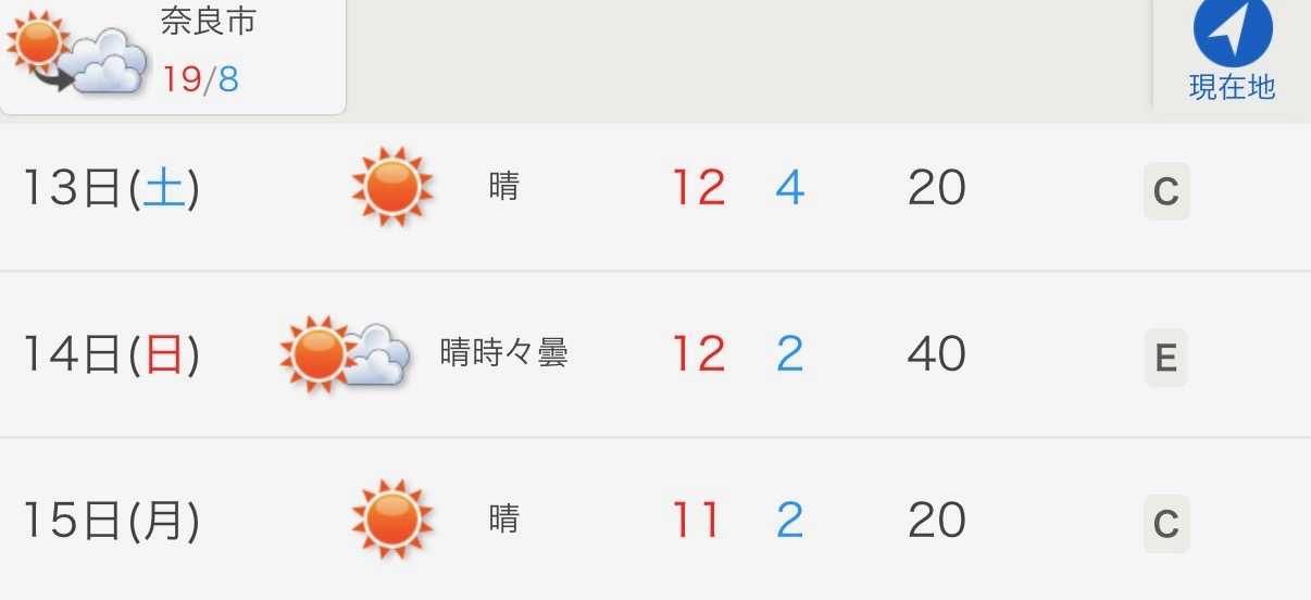 まだ信頼度は低そうですが、雨の心配はなく、ただし、気温が2℃! ま、毎年奈良は寒いですが。