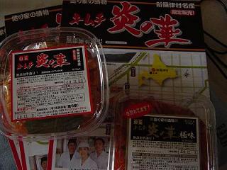 本日~ 稼動があり、出勤 でもでも~ 時間調整で、稼動後には退社 で・・・ 以前、頂いて美味しかった『キムチ』を求めて~ 幟を頼りに行ってみると~~~ ありましたぁ お店が 2種類のキムチを購入~ 『造り家の漬物 キムチ炎の華』 新篠津村名産 食べてみて