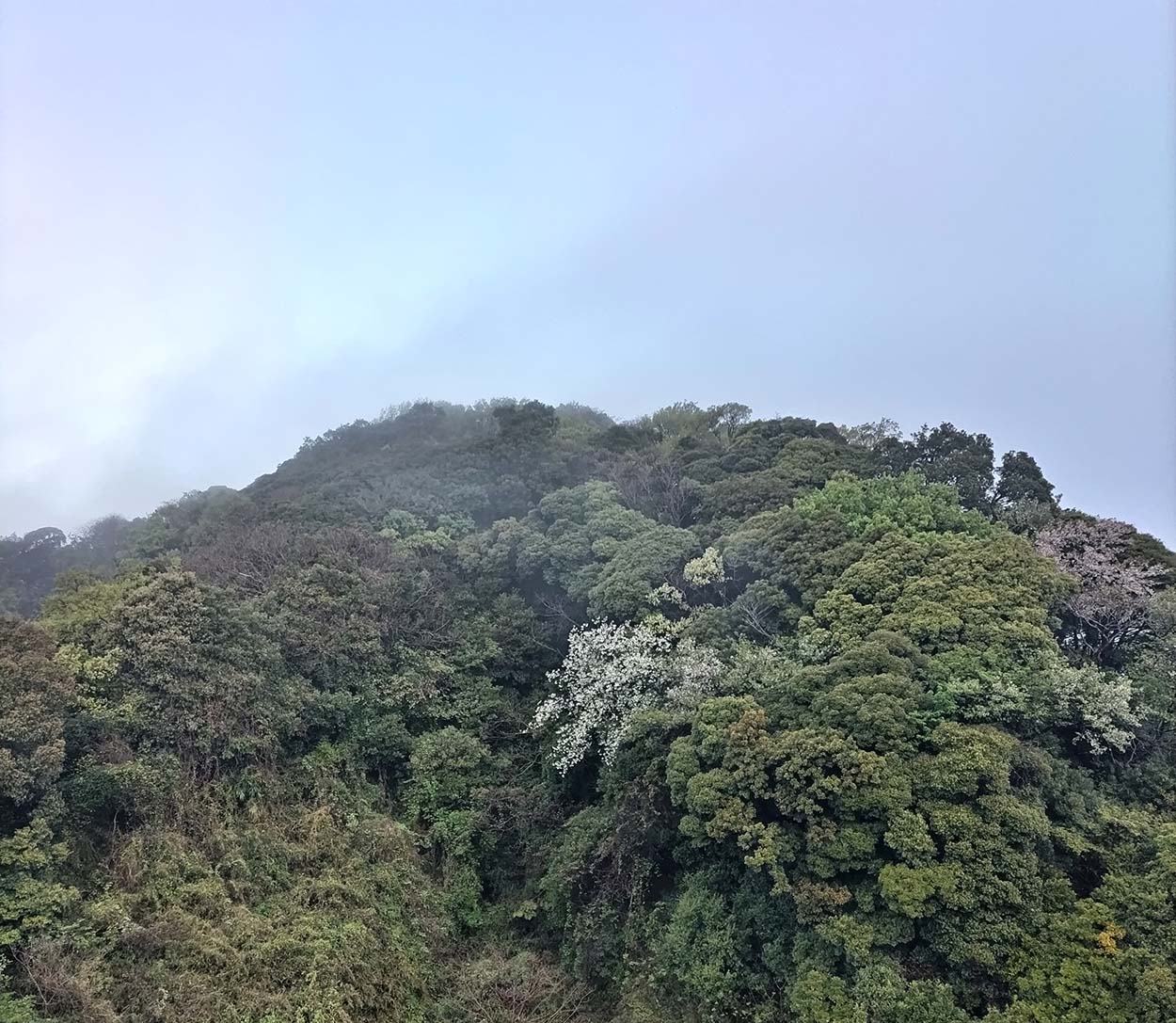 写真に撮るとよくわからないけれど、朝靄が掛かっていて、山桜がやたら白く写って幻想的だった